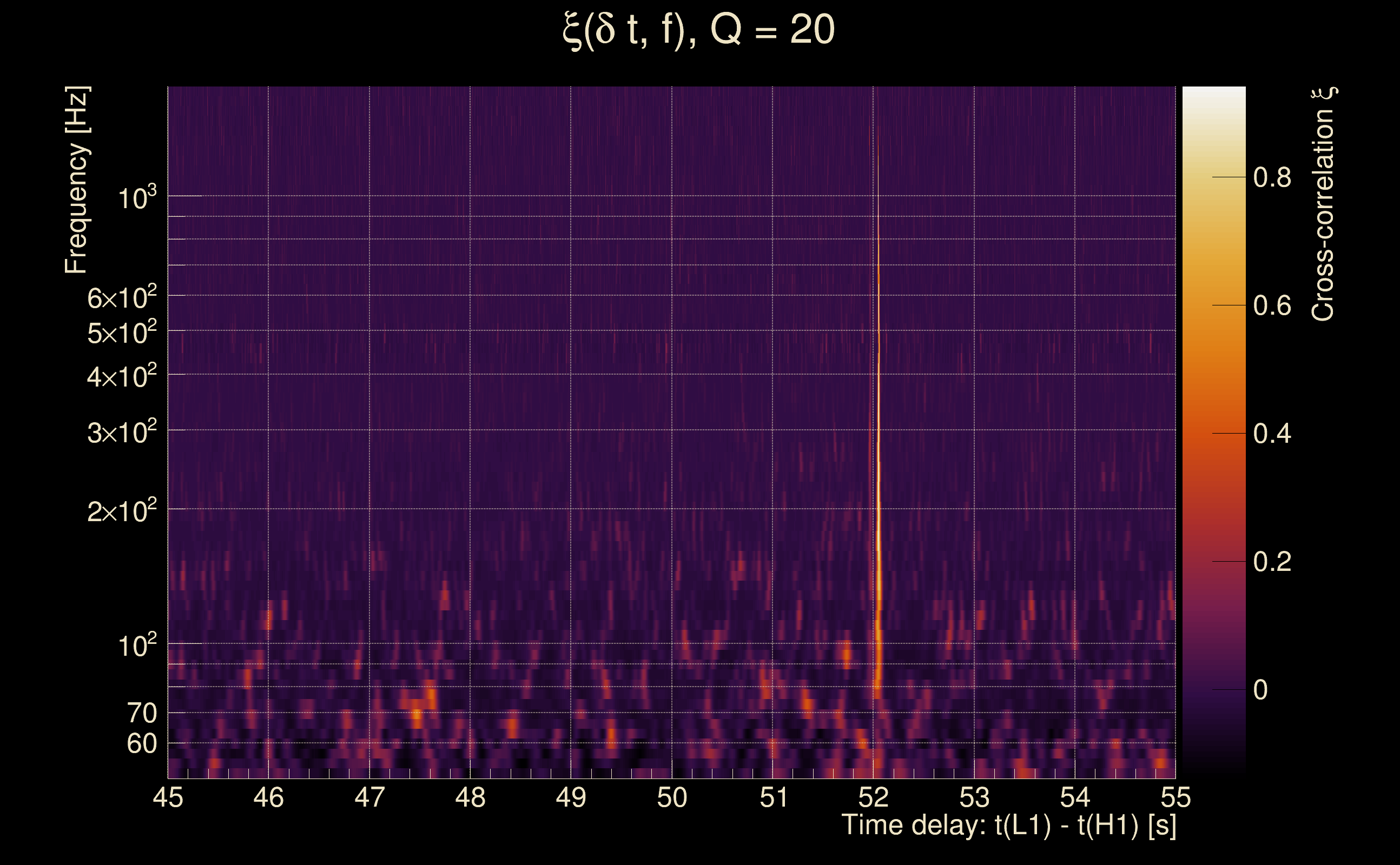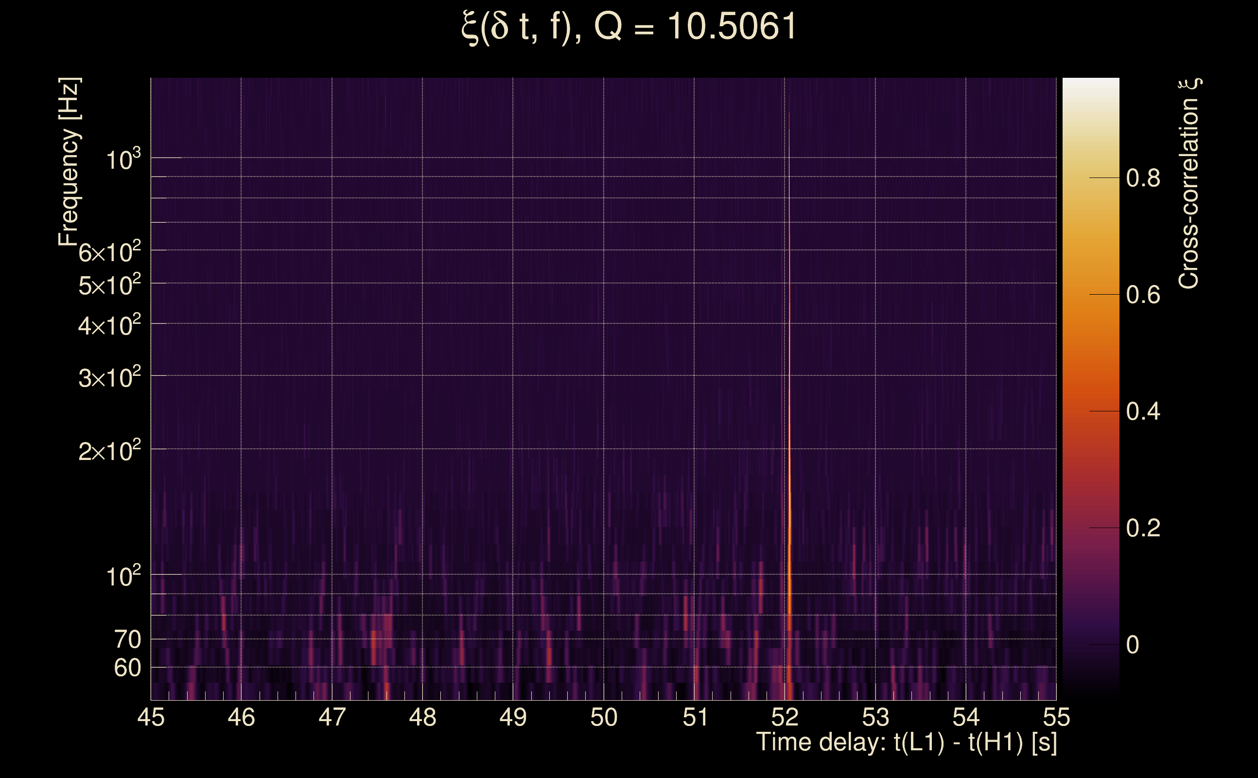 | Time delay between detectors t(L1) - t(H1): | -48.2242 s (slice index = 72 / 225), δt_gw = -0.00152388 s |