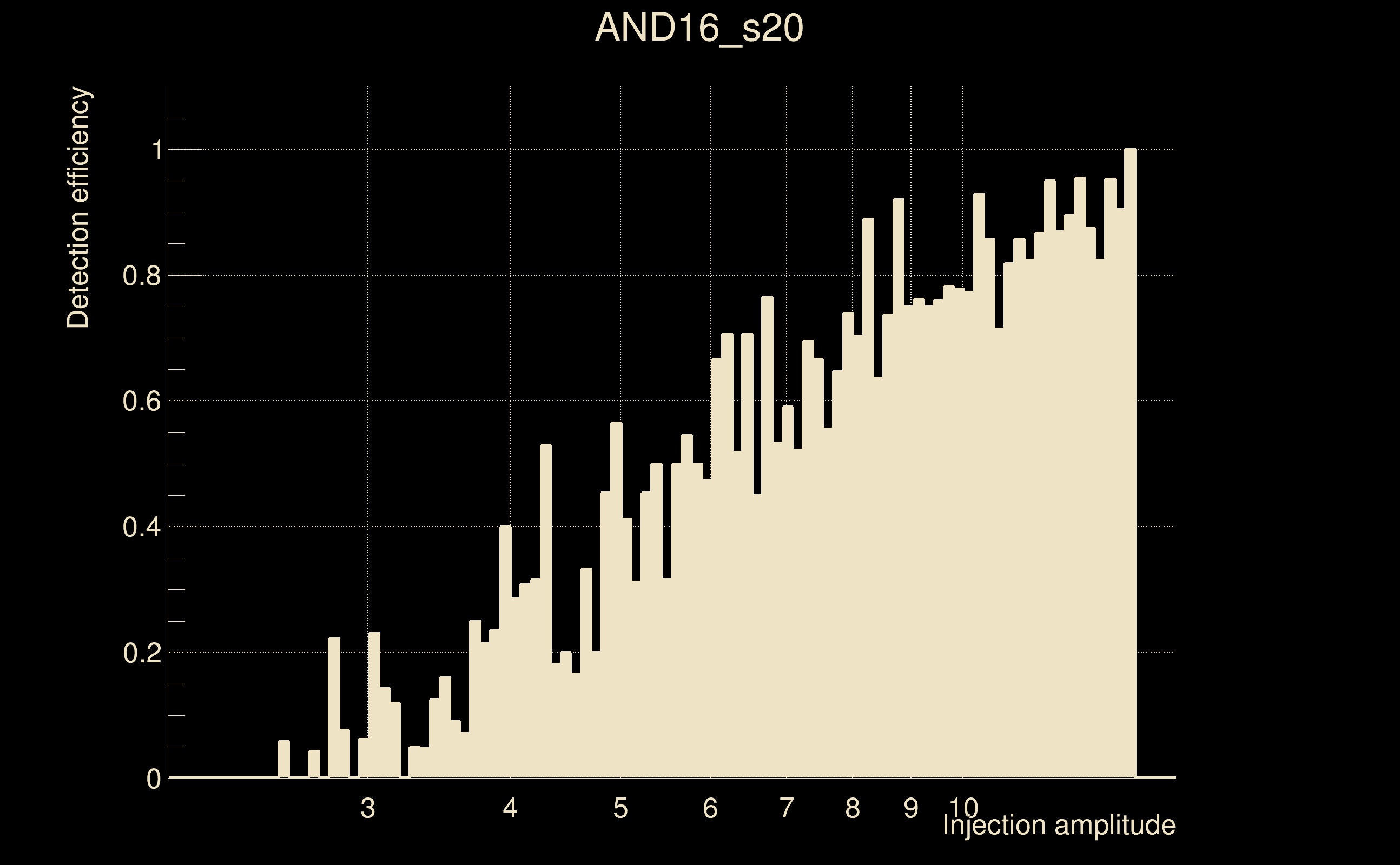 | Injection amplitude at 90% detection efficiency: | -1 |