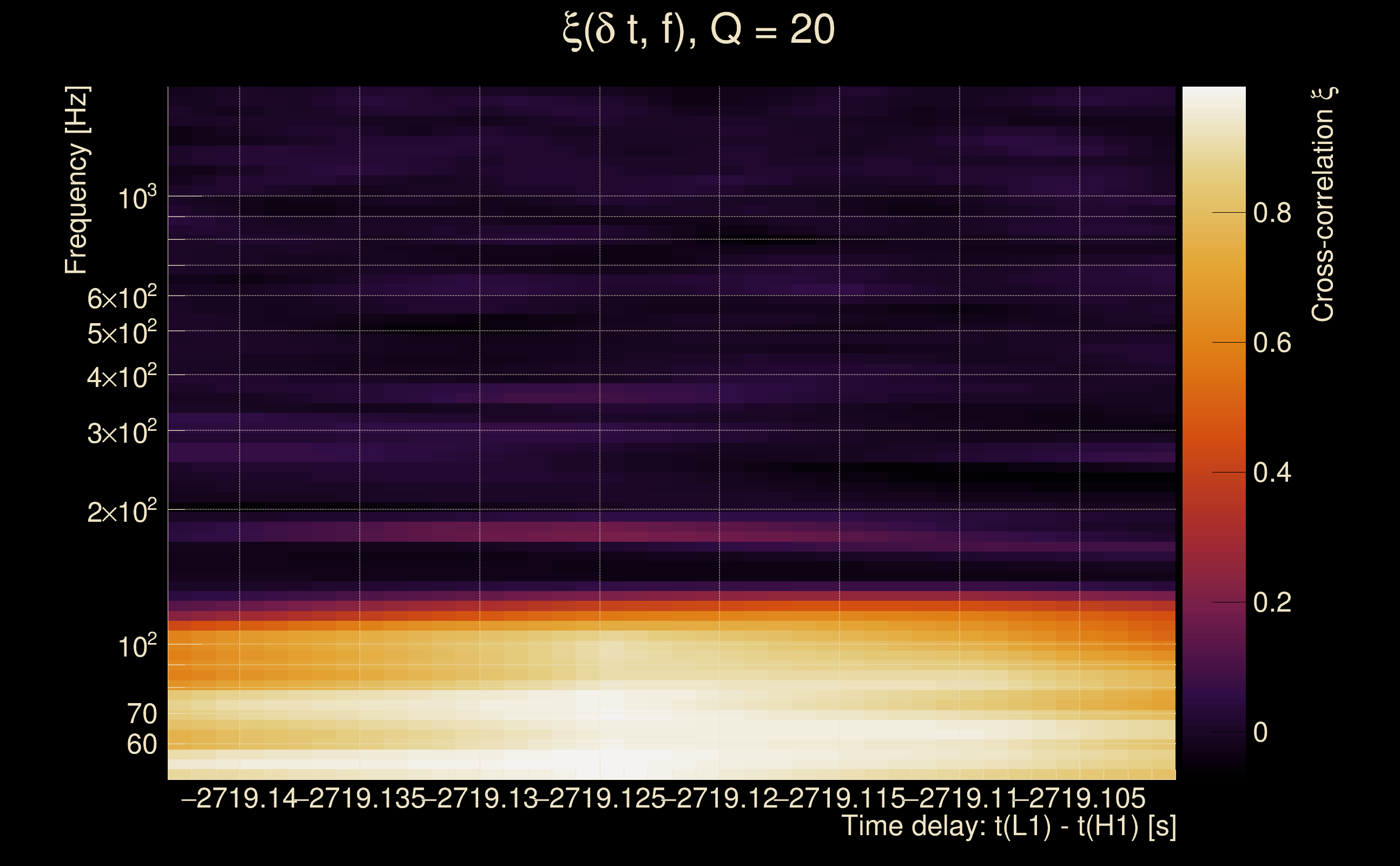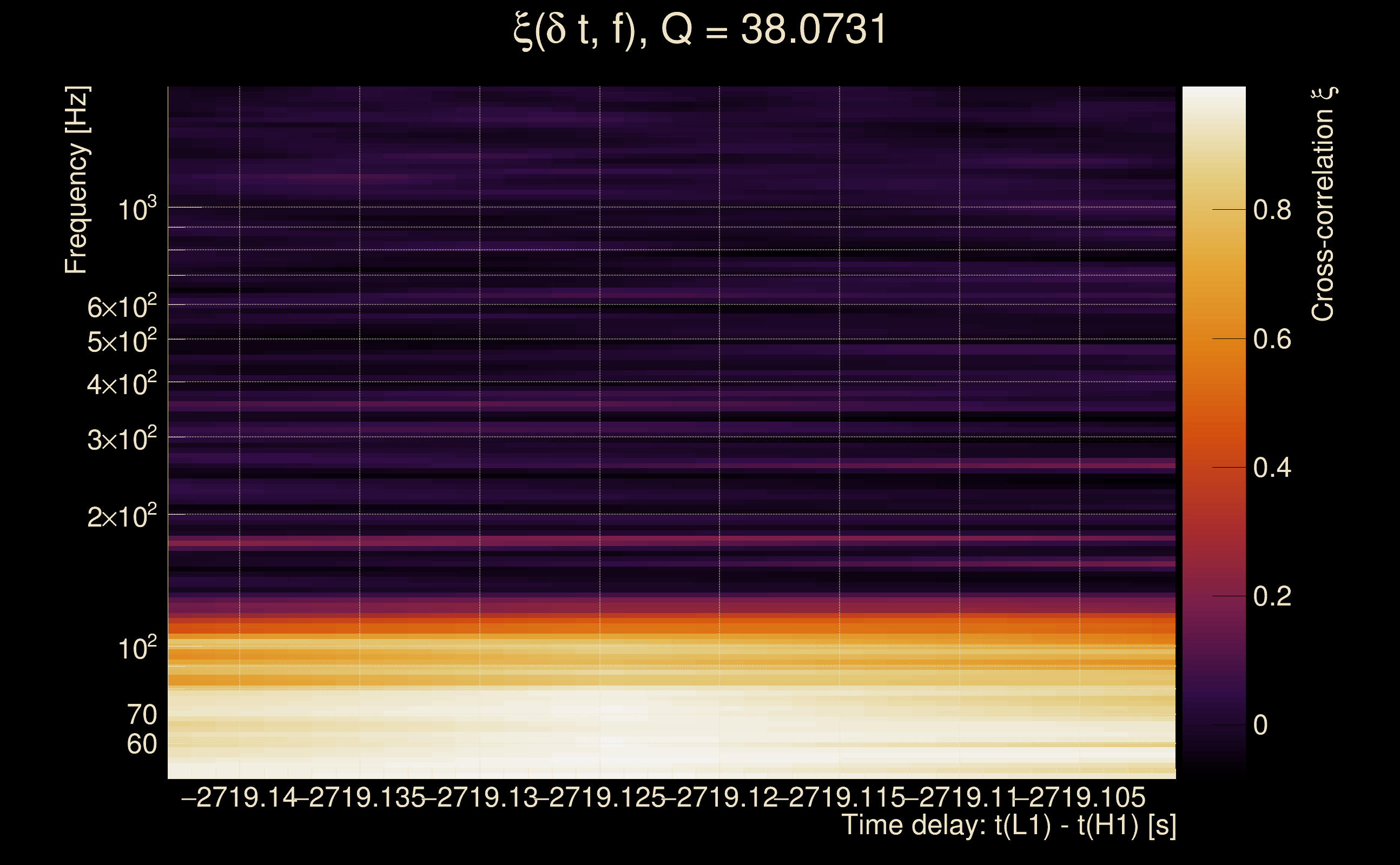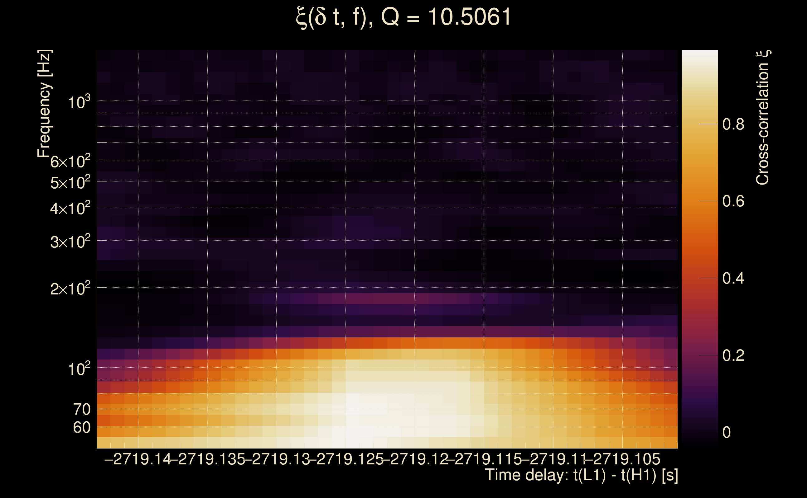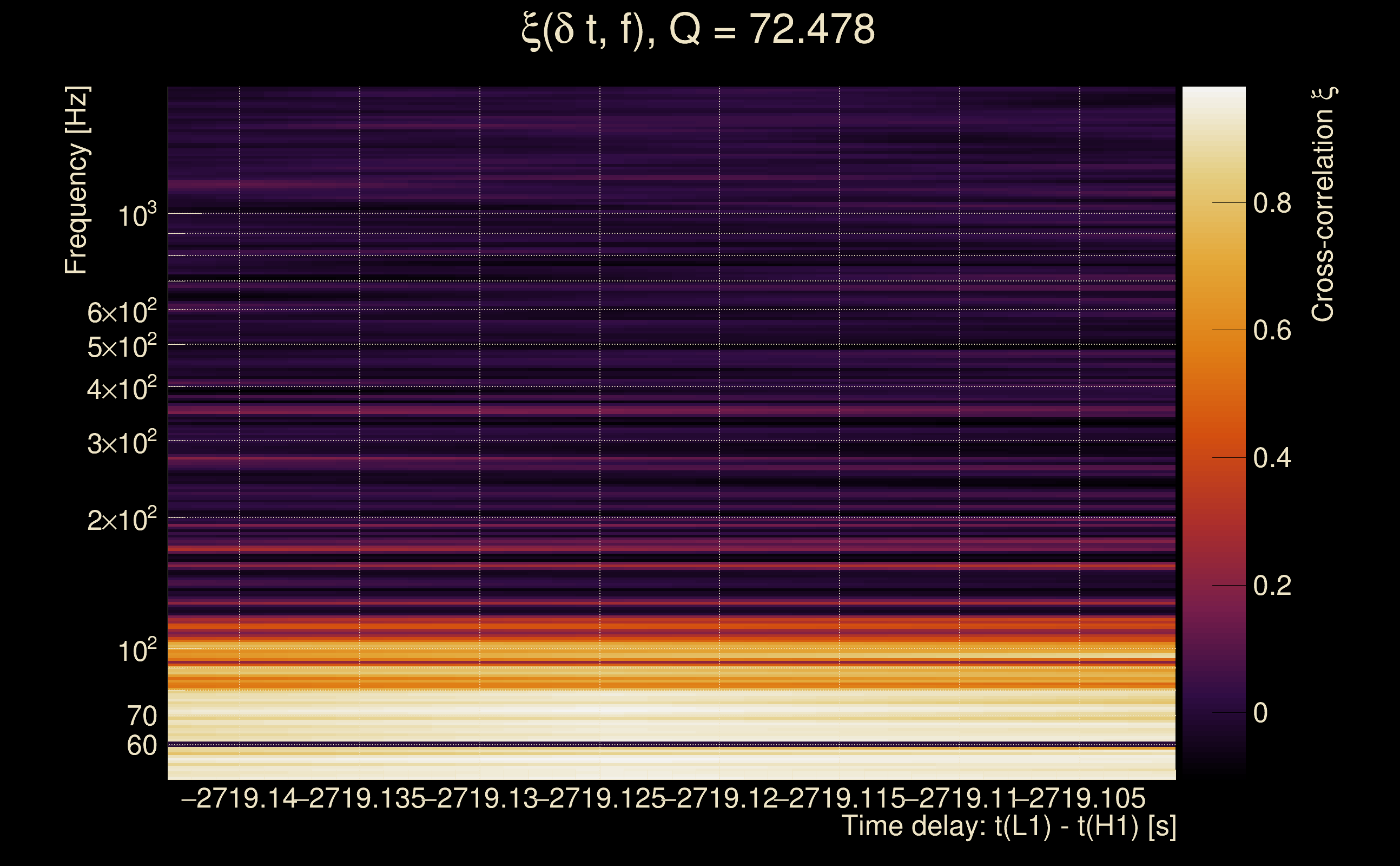 | Time delay between detectors t(L1) - t(H1): | -2729.12 s (slice index = 89 / 217), δt_gw = 0.00153224 s |