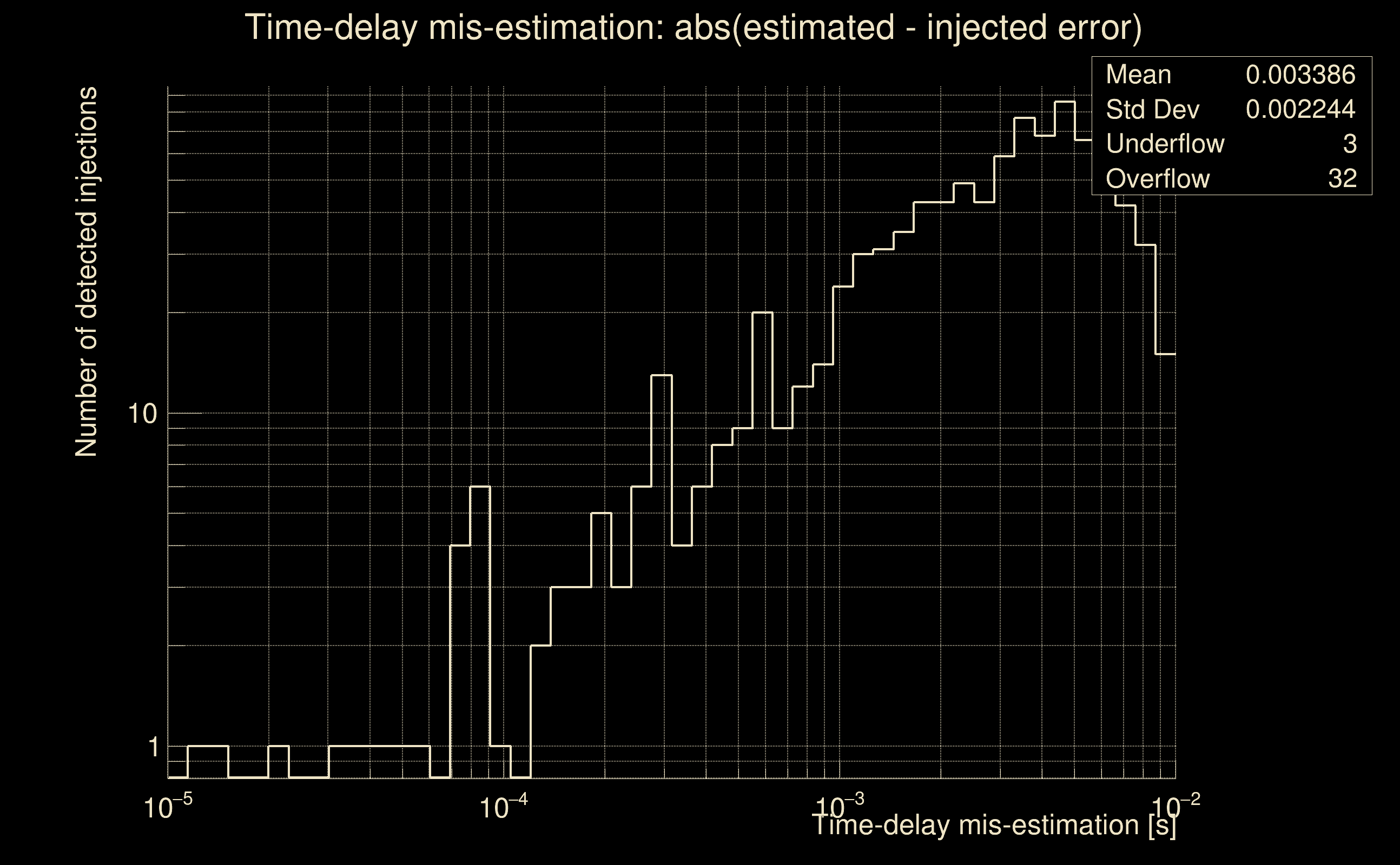 | [targeted mode] Time delay probability: | 0.498264 (0.677223 sigmas), δt_target = -0.00986028 s |