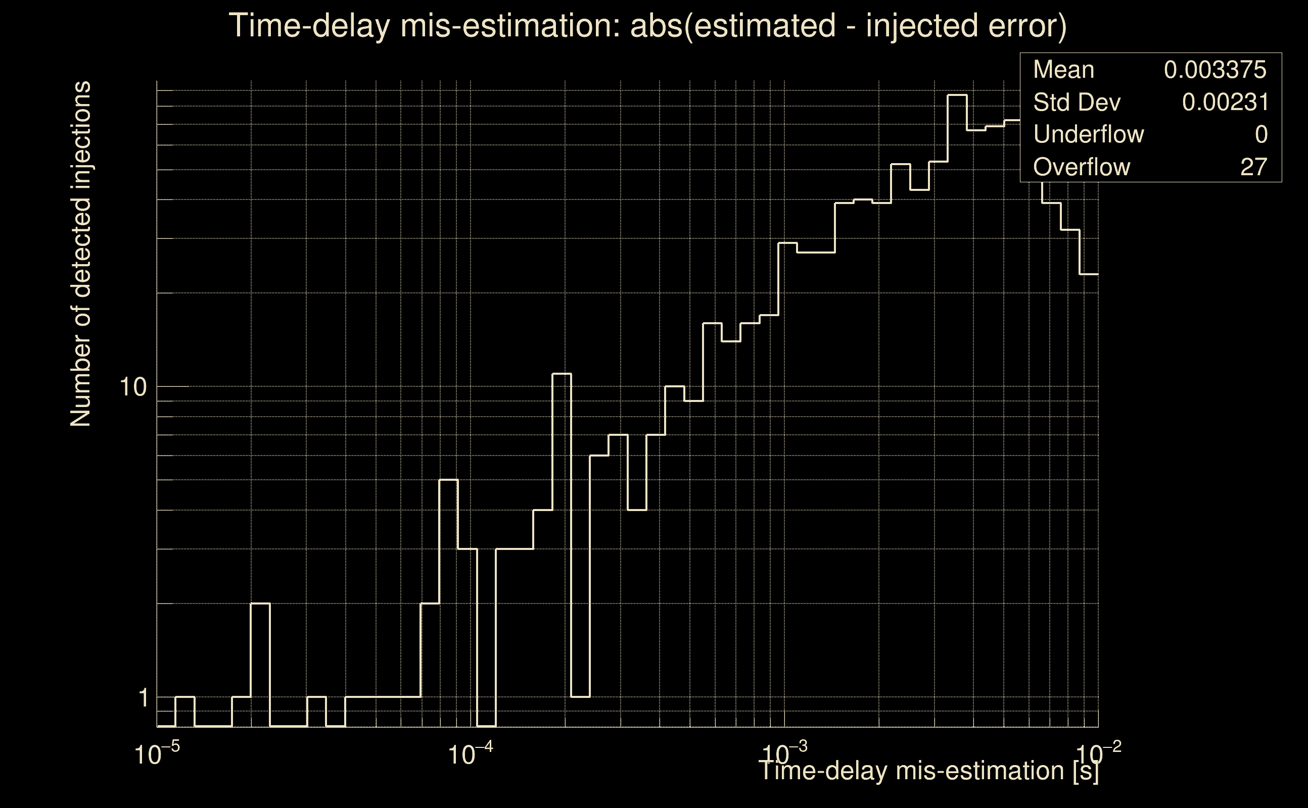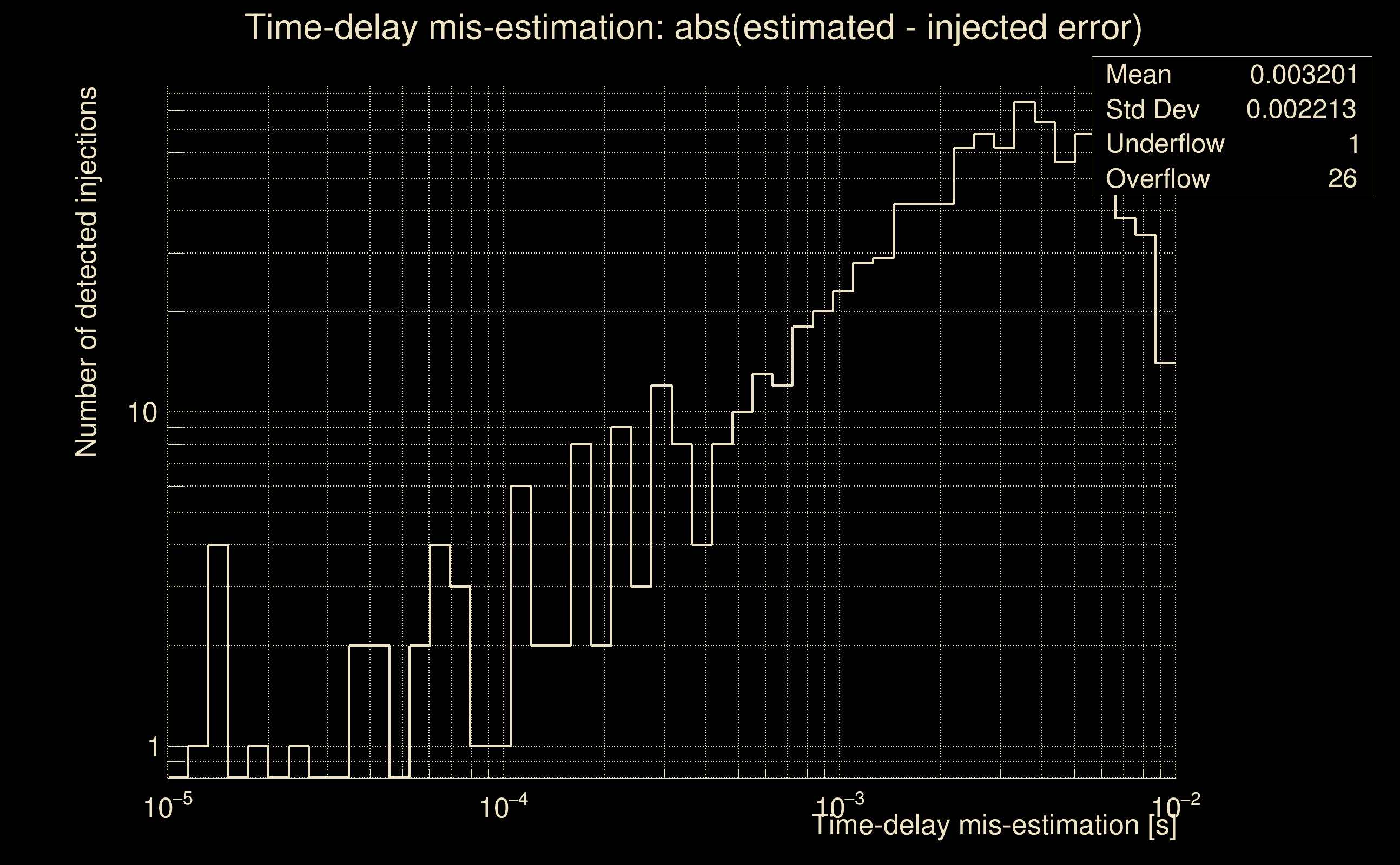 | [targeted mode] Time delay probability: | 0.498264 (0.677223 sigmas), δt_target = -0.00986028 s |