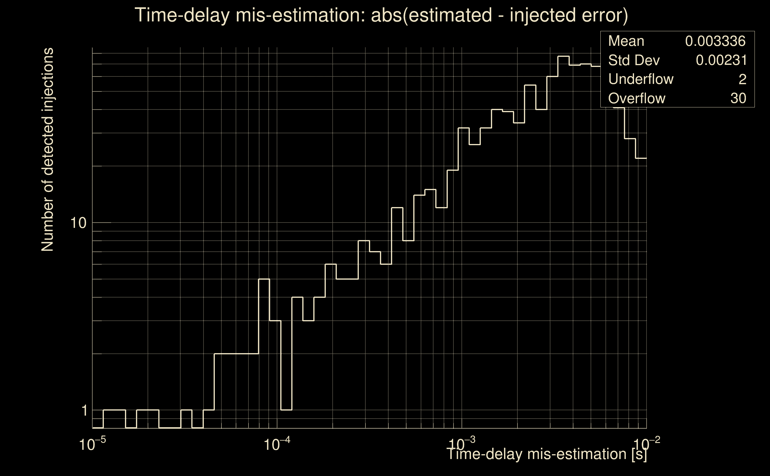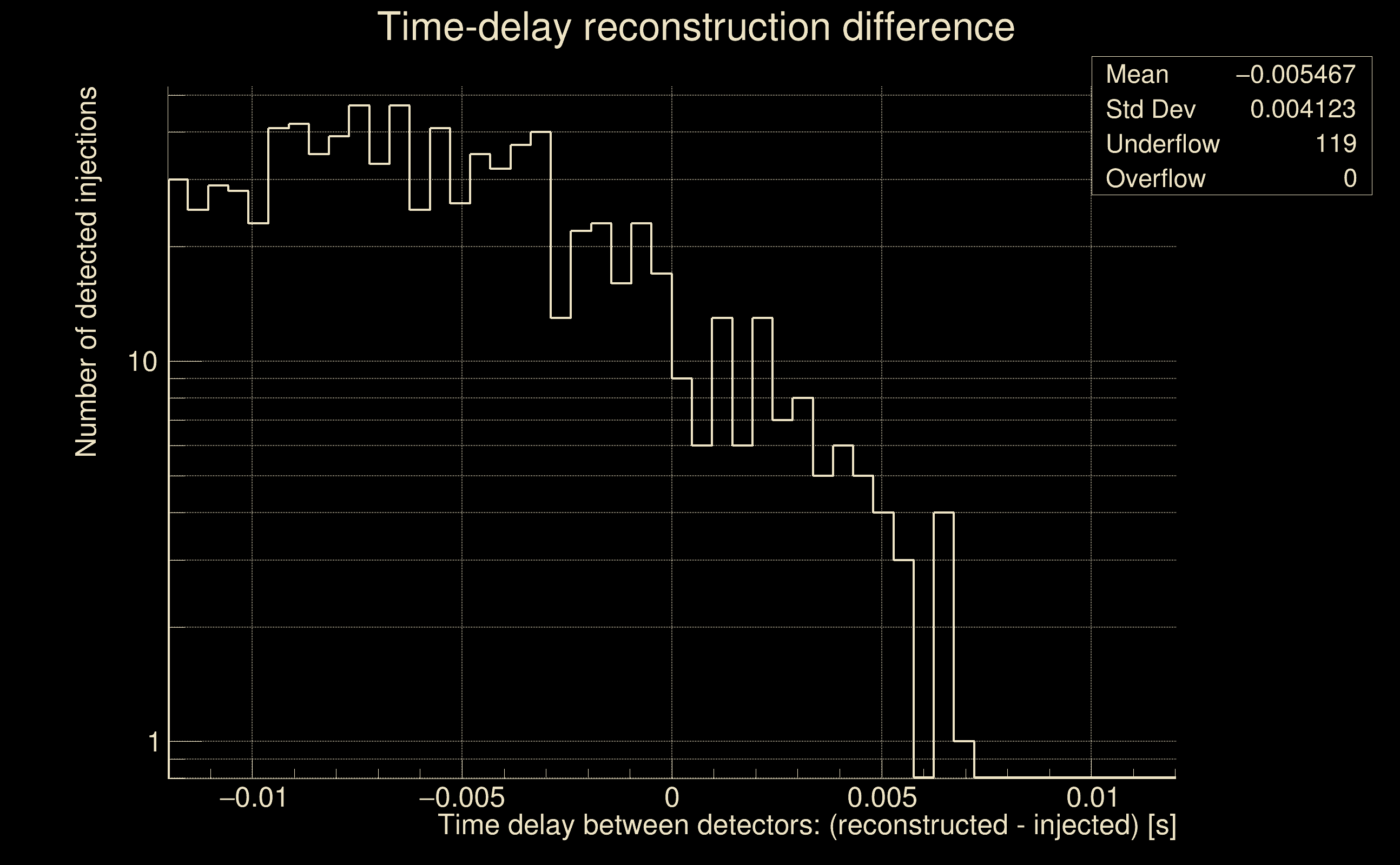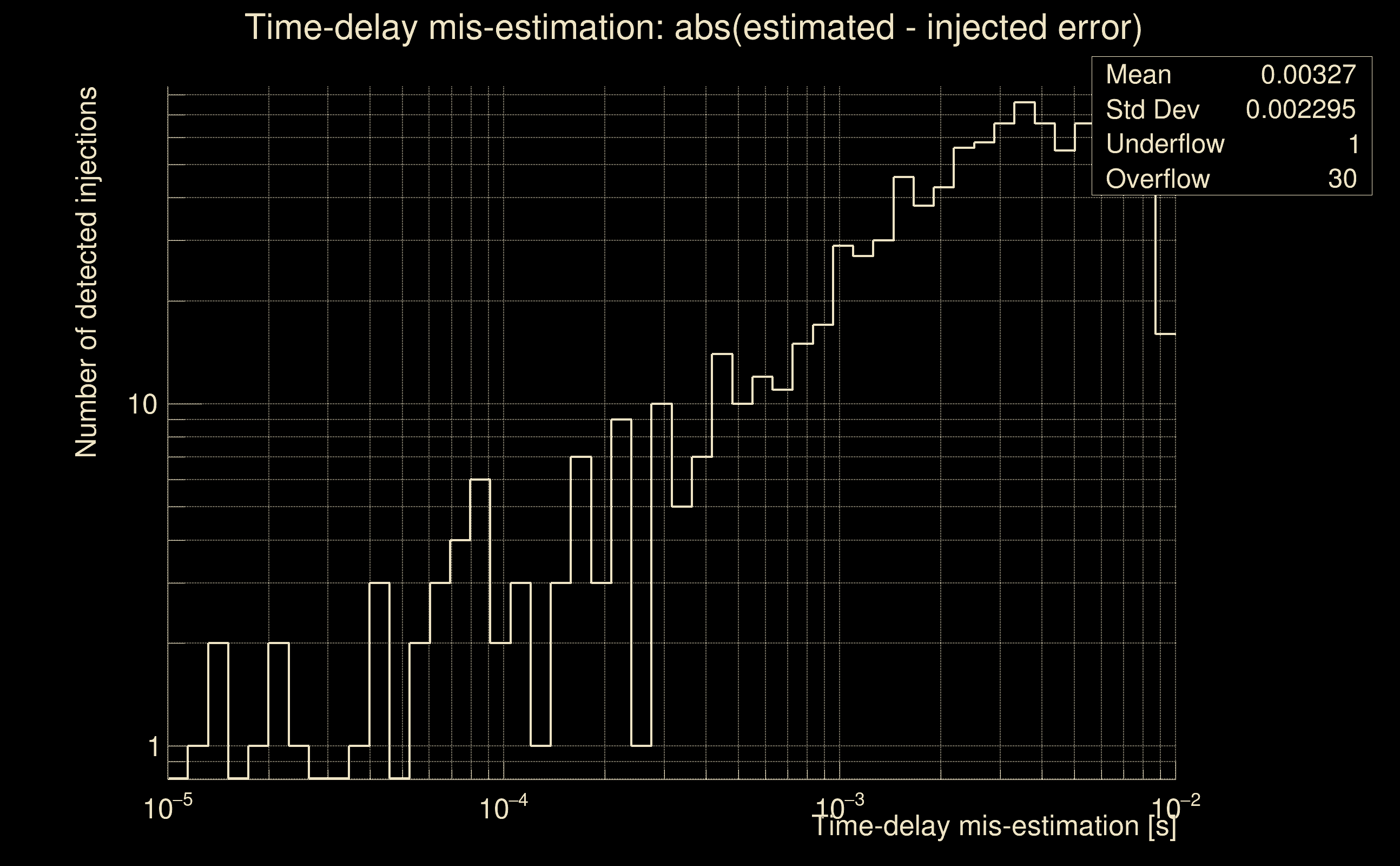 | [targeted mode] Time delay probability: | 0.498264 (0.677223 sigmas), δt_target = -0.00986028 s |