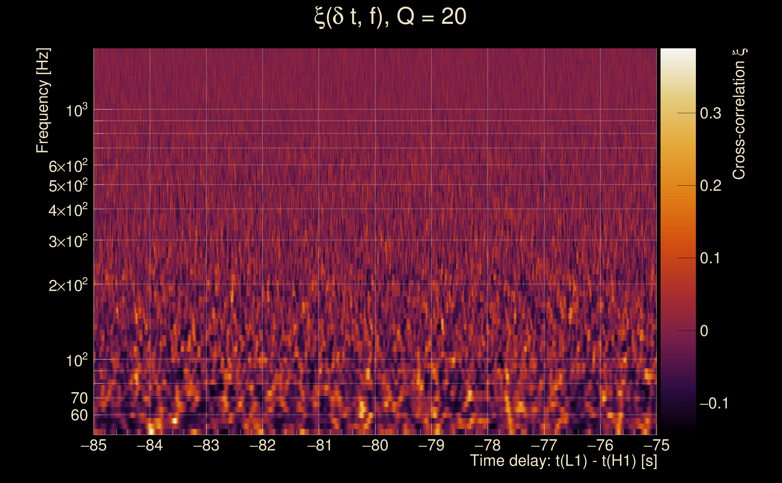 | Time delay between detectors t(L1) - t(H1): | -77.6587 s (slice index = 57 / 217), δt_gw = -0.00468642 s |
