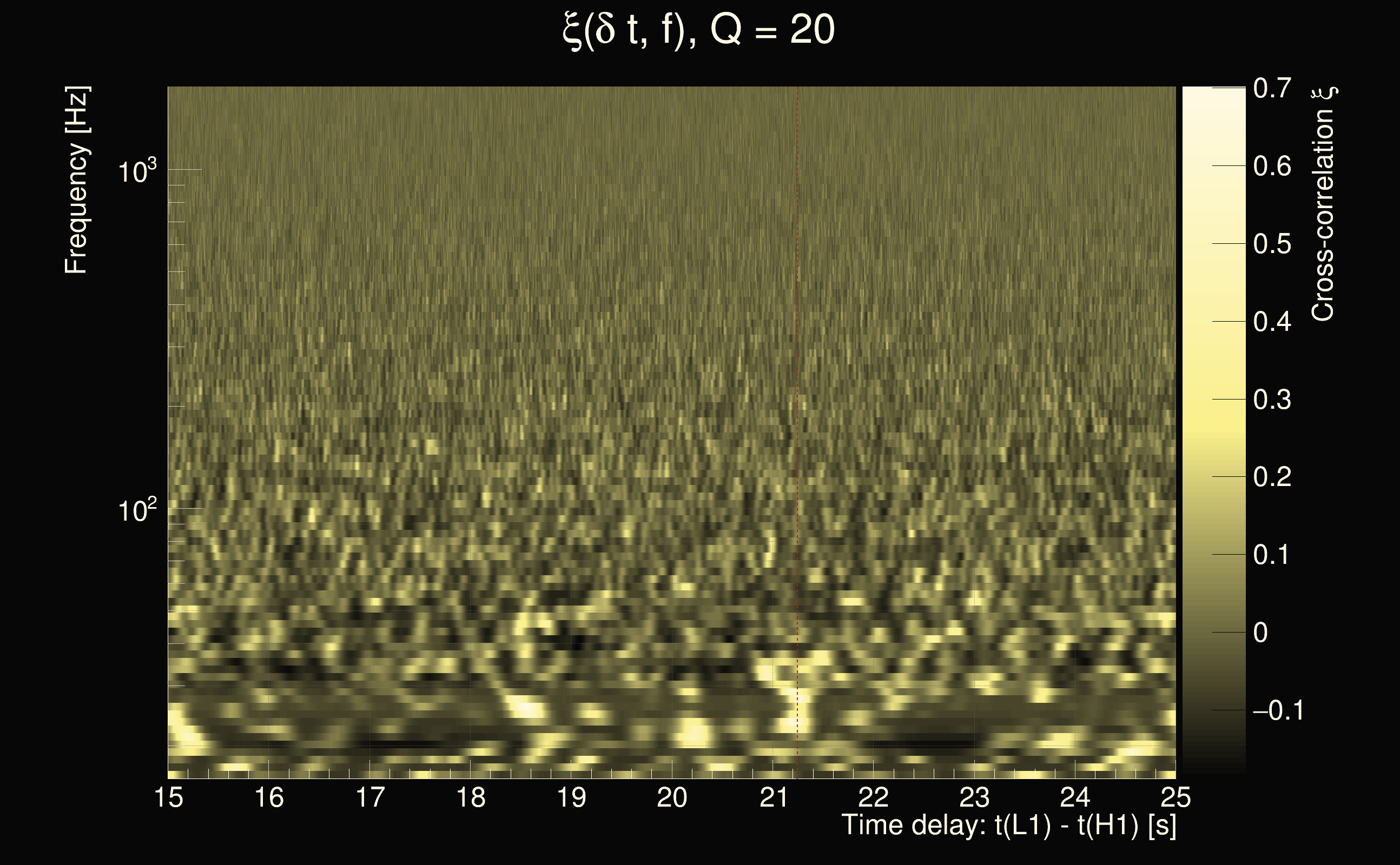 | Time delay between detectors t(L1) - t(H1): | 21.2463 s (slice index = 84 / 225), δt_gw = 0.00211704 s |