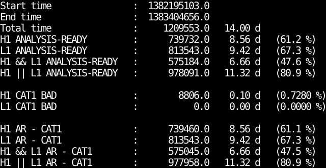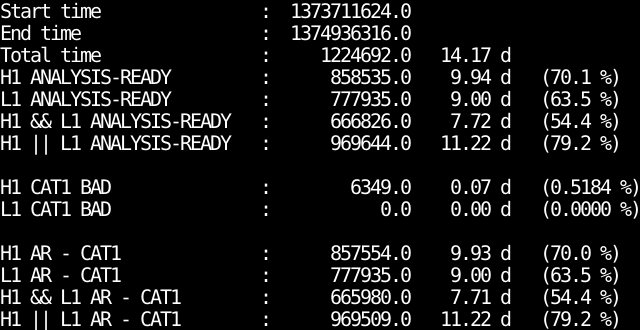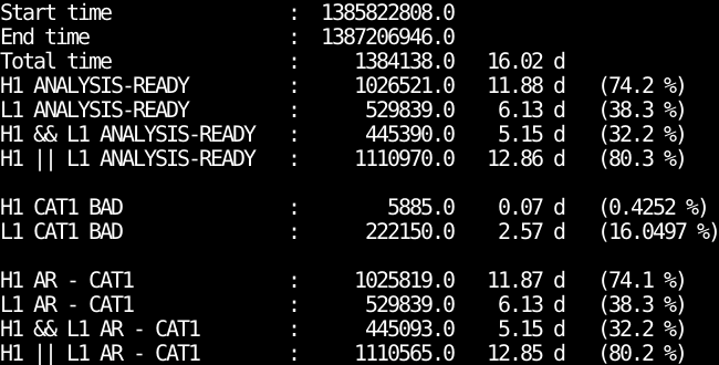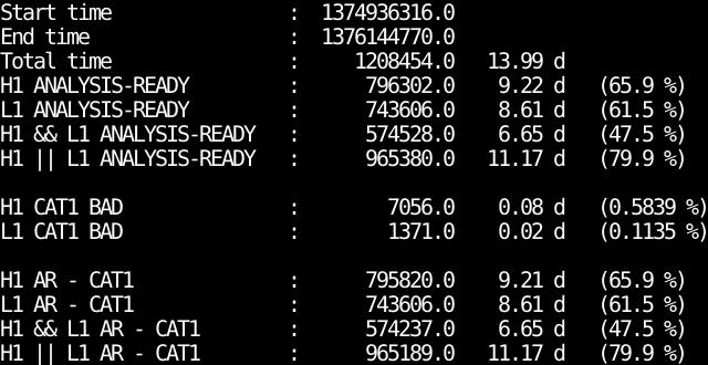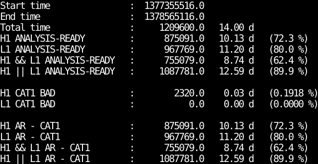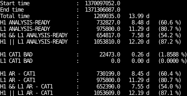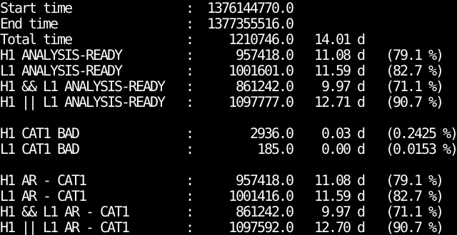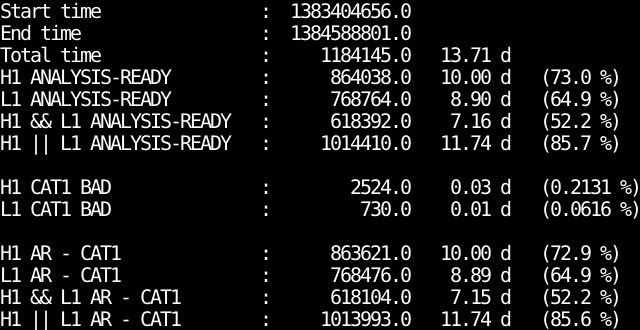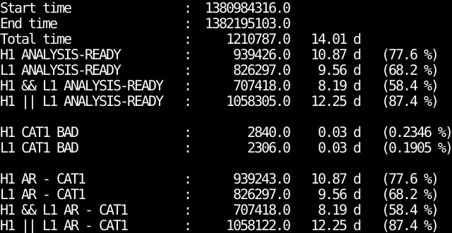 - IFO_ANALYSIS_READY-CAT1.txt : Analysis ready segments minus bad CAT1 segments