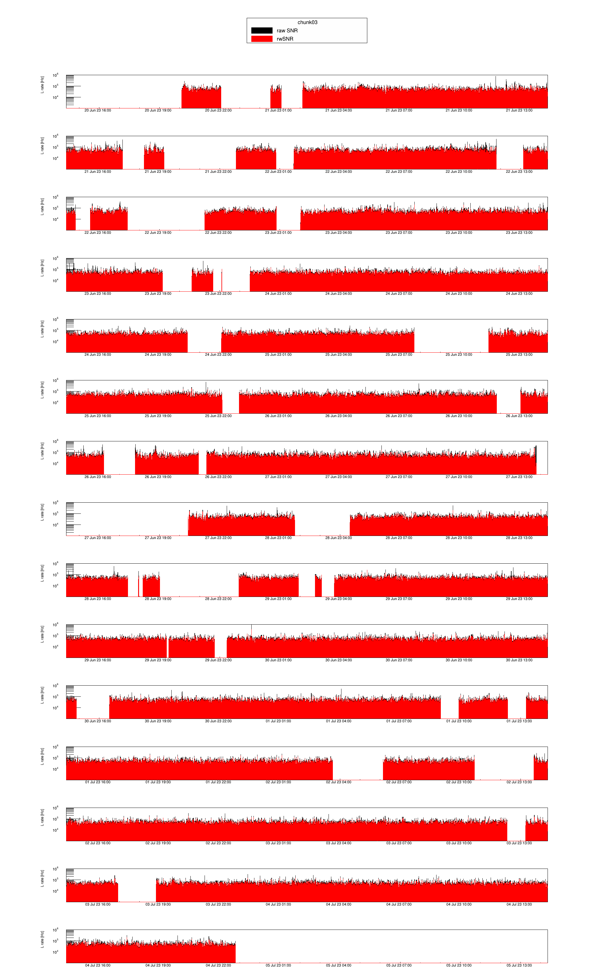 The data analysed in this page correspond to chunk03 from 2023-06-20 14:21 (UTC) to 2023-07-04 22:47 (UTC) (GPS time range 1371306087 - 1372546081)