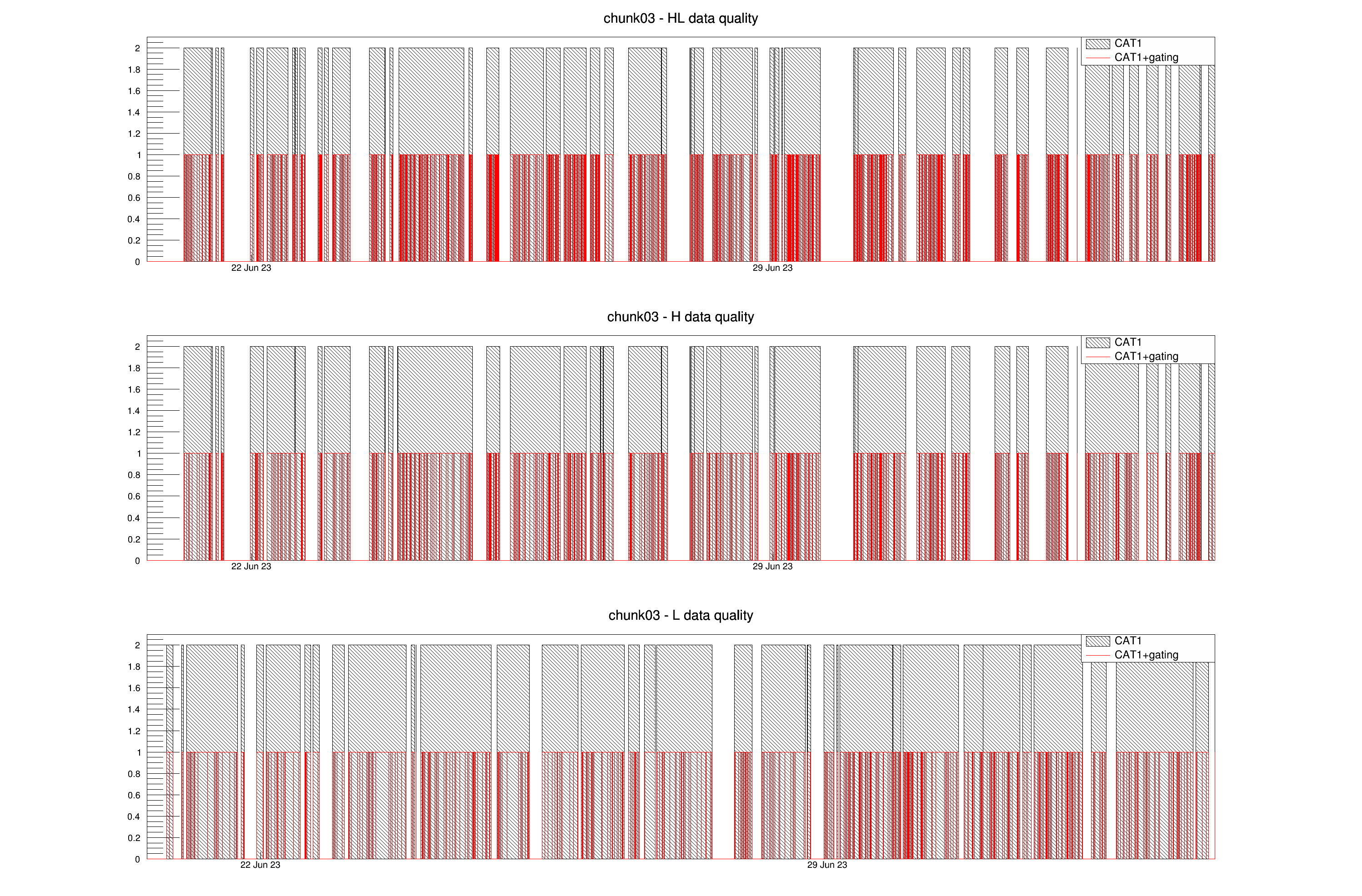 These directories contain the files with list of good segments after CAT1 and list of good segments after gating for this chunk and summary is given here
