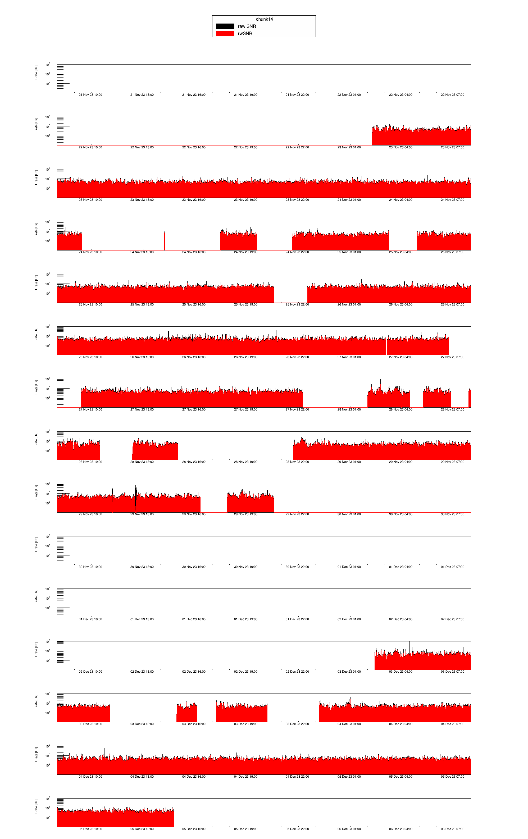 The data analysed in this page correspond to chunk14 from 2023-11-21 07:59 (UTC) to 2023-12-05 14:46 (UTC) (GPS time range 1384588801 - 1385822808)